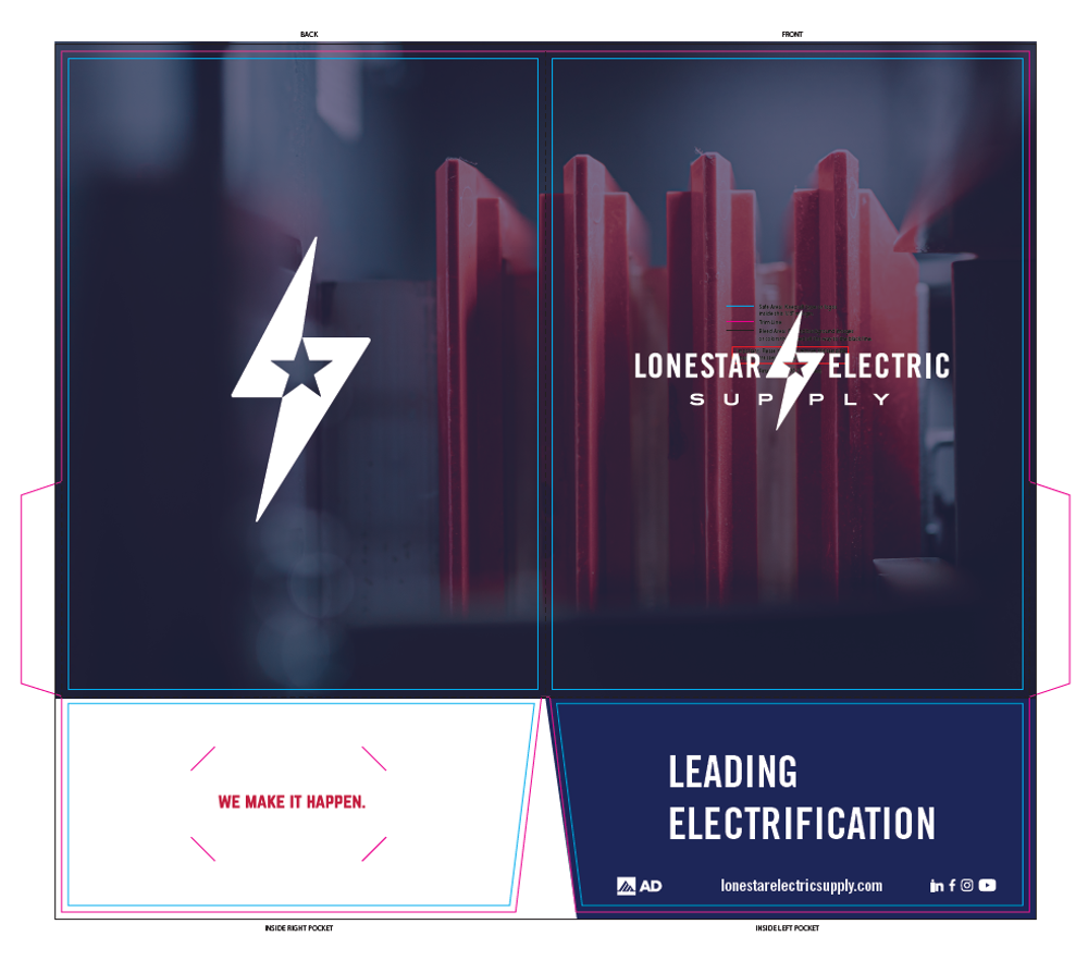9" x 12" presentation folder (50 folders per case). 12 PT SG C1S, 4/0. Two 4" pockets with business card slits on the right pocket.